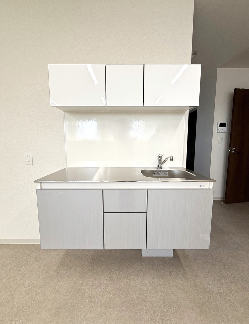 13mm厚のスリムタイプのステンレストップに、取手レスの扉と、