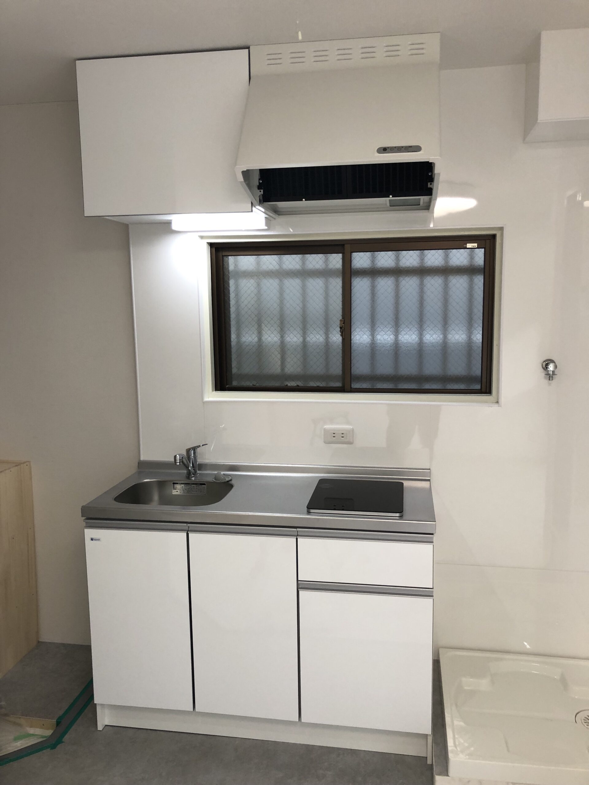 水栓や加熱機器などの仕様はほぼそのままで、レンジフードのみを変更しました。