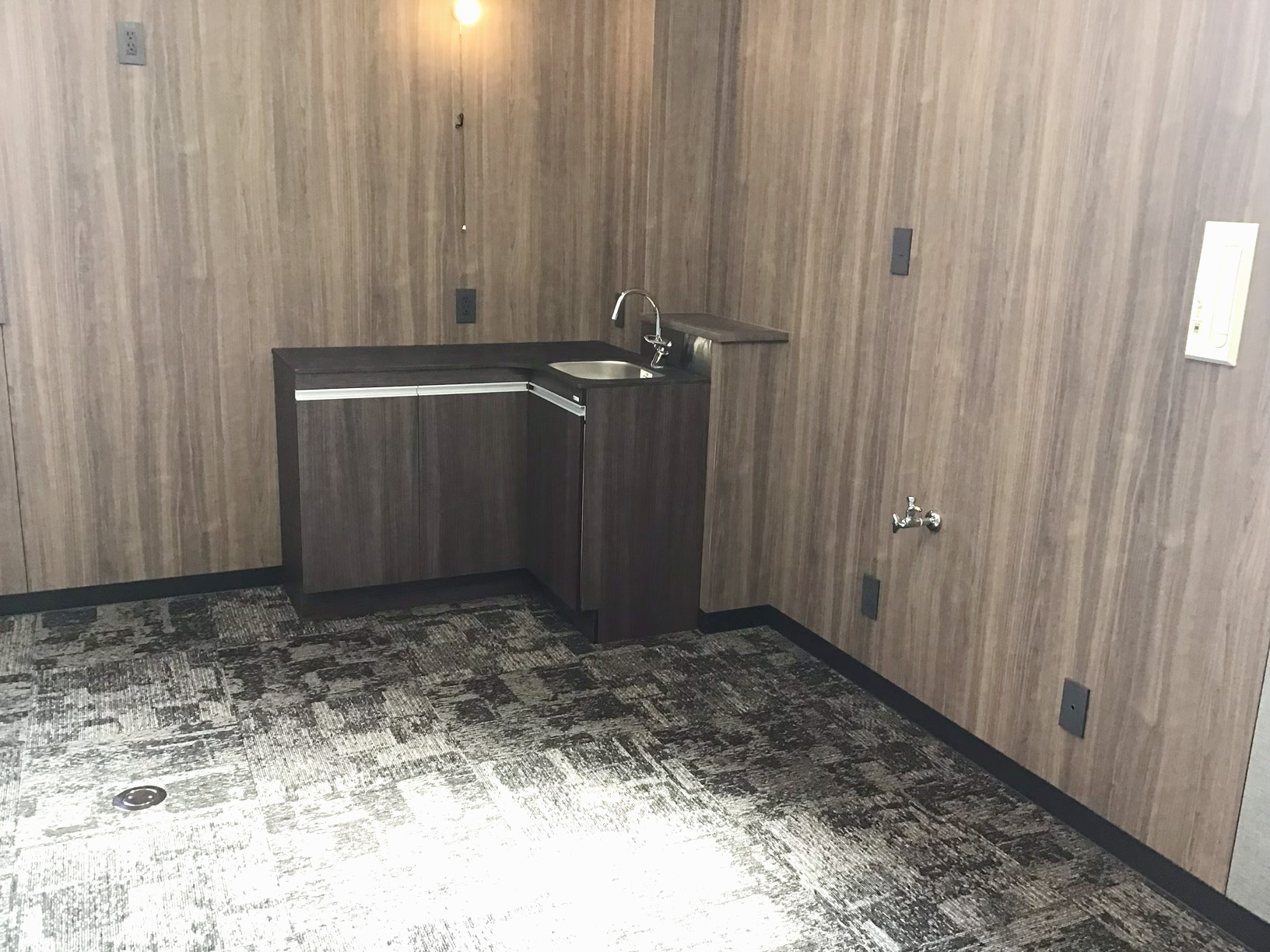 事務所が新築物件で、部屋の内装がシックな色合いのため、